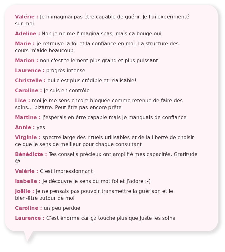 Des énergéticiennes qui voulaient ancrer leur pratique dans quelque chose de plus profond et être capable de faire face à plus de situations.