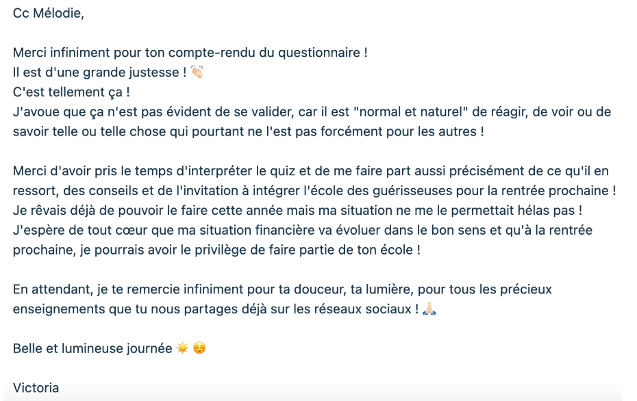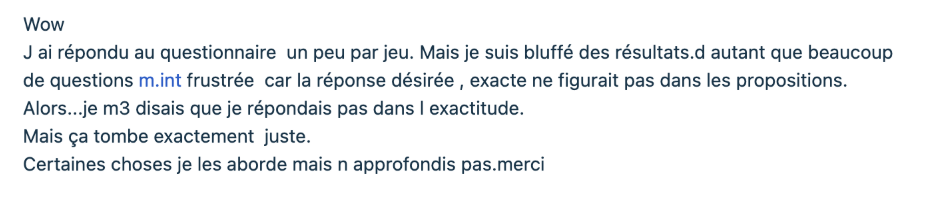 Ce questionnaire a été conçu avec beaucoup de soin pour t’offrir une lecture cohérente et structurée de ce que tu portes déjà en toi,